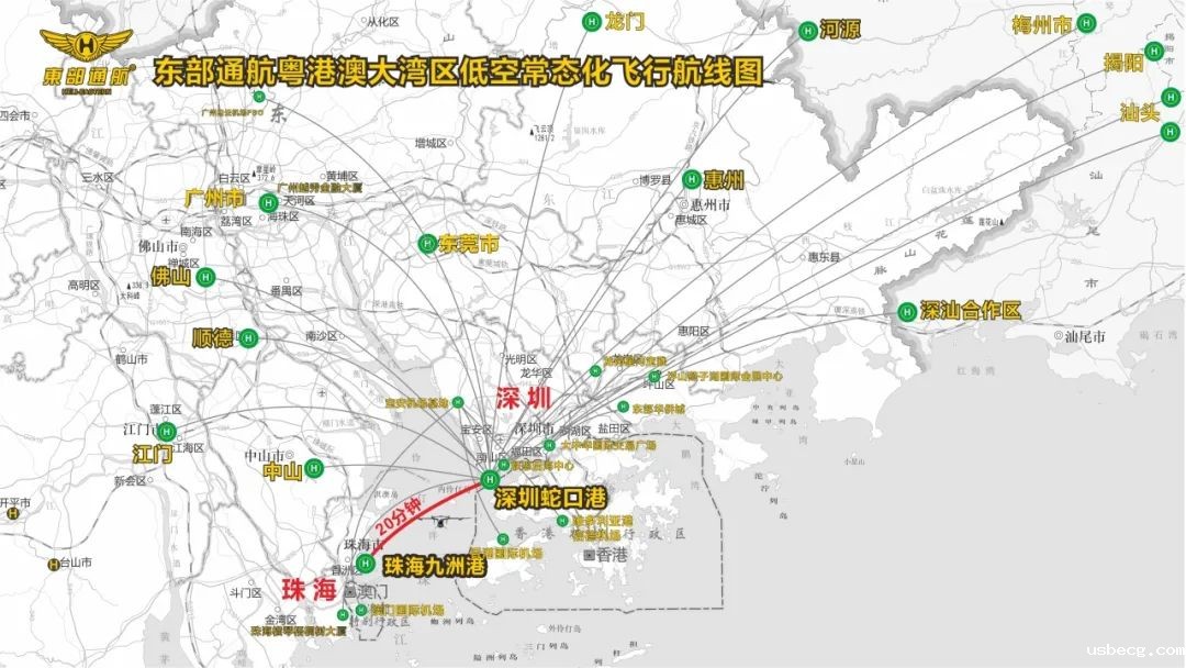 eVTOL跨城跨湾航线的首次演示飞行成功,是对低空出行商业化运营的重要探索。东部通航在大湾区各重要节点区域建成直升机场等低空基础设施,运营管理国内超100个起降点,这些起降点也可作为eVTOL飞行使用,在未来数年内将开设百条以上eVTOL航线。
