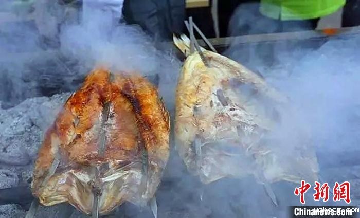 在这里,各种冷水鱼烧烤摊位一字排开,穿羽绒服、戴手套吃烧烤成为当地一道独特风景。