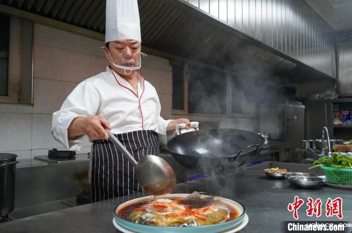 什么品种的鱼怎么做更好吃?这对阙富疆早已不在话下。凭借多年经验,他和当地厨师研制、改进,将鲫鱼、鲤鱼、狗鱼、五道黑等20多种鱼类,通过烹、炸、煎、煮等数十种烹饪技术,搭配成不同的冷水鱼宴。